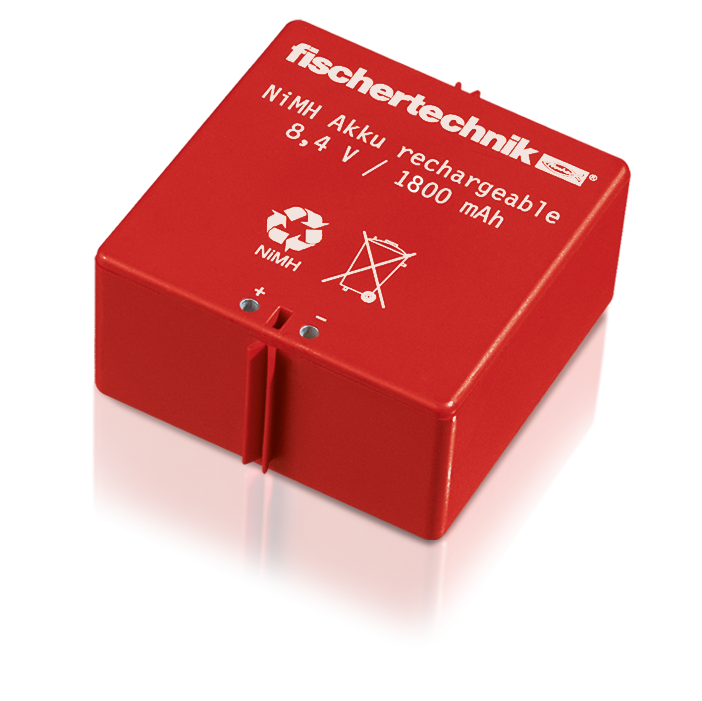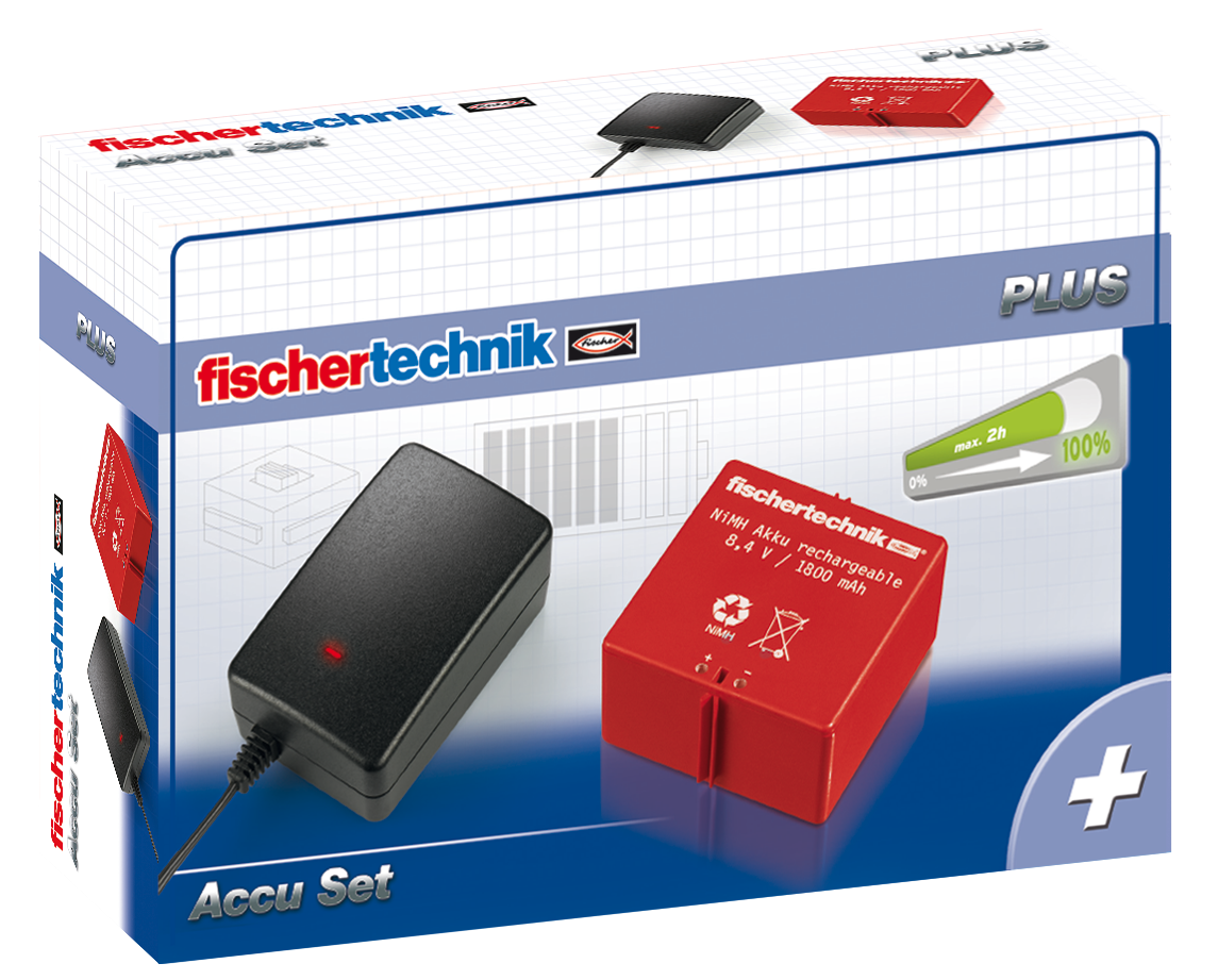 In order to program and keep your fischertechnik designs moving, you need to provide an adequate powersource. The fischertechnik Accu Set offers builders a NiMH battery and a reliable charger.
